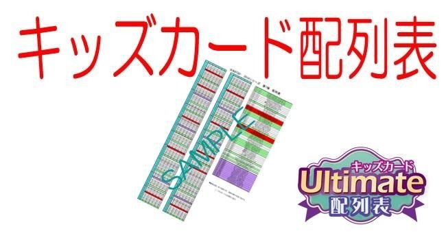 キッズアーケードゲームの配列表です。 配列はあくまで目安です。完全な物ではありませんが好評でリピーター続出です。 ご自分で印刷される方はダウンロード版(PDFファイルになります)印刷物が欲しい方は通常発送版の購入をお願いします。 ★配列表とはゲーム機(筐体)セットする前の箱の中に入ってるカードの順番です。実際の排出とは異なります。★なぜ排出順と配列順は違うの?ゲーム機(筐体)の中には複数個所シンリダーがあります。排出はランダムで排出する為に排出と配列は違うのです。 【配列に追加の情報が入った場合の対応】ダウンロード版、通常発送版に関わらず追加更新情報の御案内はTOPページの新作情報に更新の告知をしますUltimate配列表は転売、転写、転用を禁止しております。発覚した場合法的処置を取る場合があります。